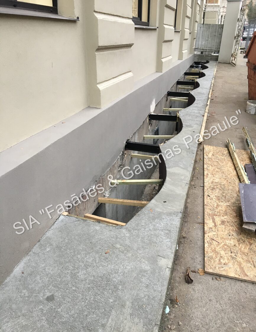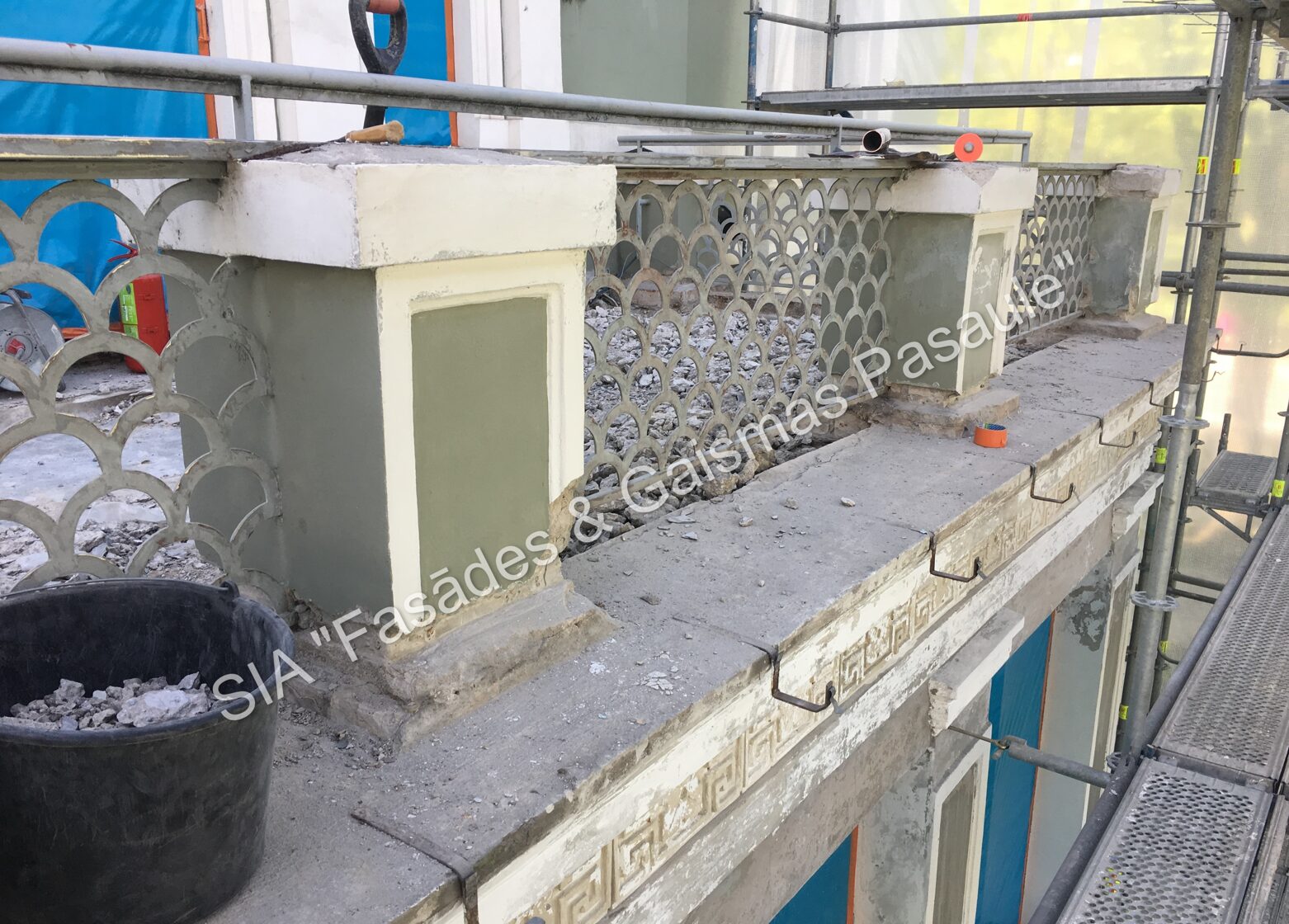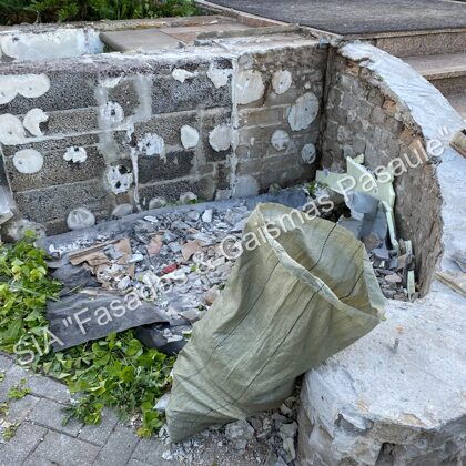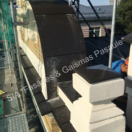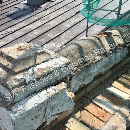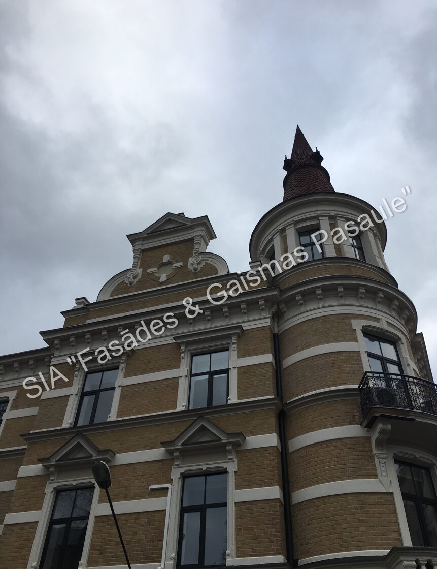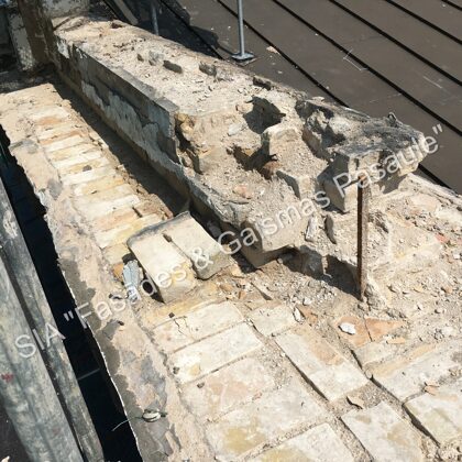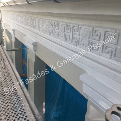 Fasādes dekoratīvos elementus, ja nepieciešams, uzmanīgi demontējam un nogādājam specializētās darbnīcās. Svarīgi saglabāt to veselumu — tāpēc demontāža tiek veikta maksimāli saudzīgi.