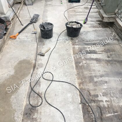 noņemam stipri nolietotus vai sabrukušus materiālus;